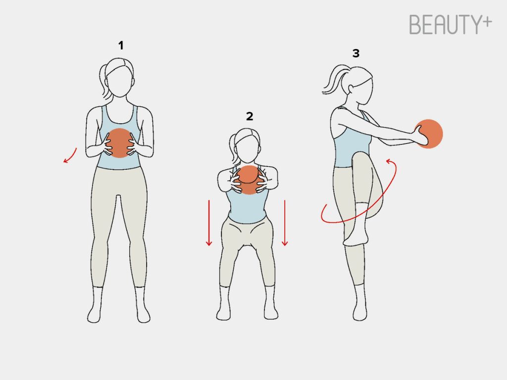 #1 BALL SQUAT & TRUNK ROTATION WITH KNEE-UP